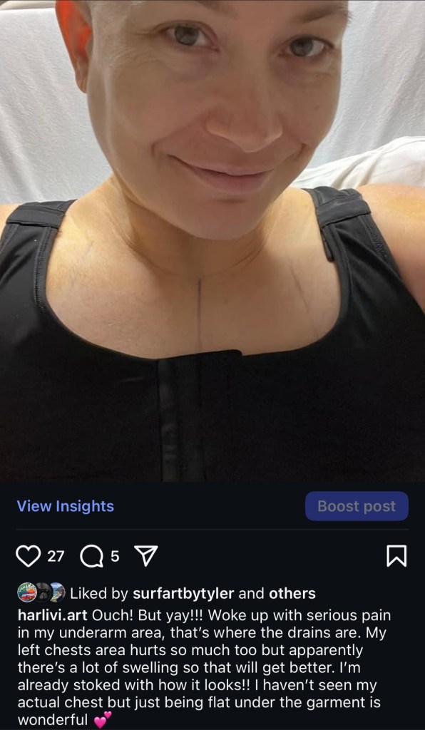 24th April, 2023. I had top surgery. It proved to be an unfortunate experience. The surgeon, Dr Patrick Briggs unexpectedly retired with no warning before doing all necessary revisions so that my chest and excess tissues around the scars are an ongoing new source of concern. It was a very confusing time and Coco Ruby, the rooms he worked from did not handle it well. I will do a full post at a later date on this. I am currently speaking with another surgeon about the possibility of correcting what I can finally admit is a botched surgery. Regardless of how much anxiety, stress and pain I have experienced I am grateful to no longer have breasts (that word makes me feel ill to even type here in relation to myself). I do believe it’s wrong that they get away with such terrible behaviour that affects your health, relationships and self esteem. I hope no one else has to go through that.